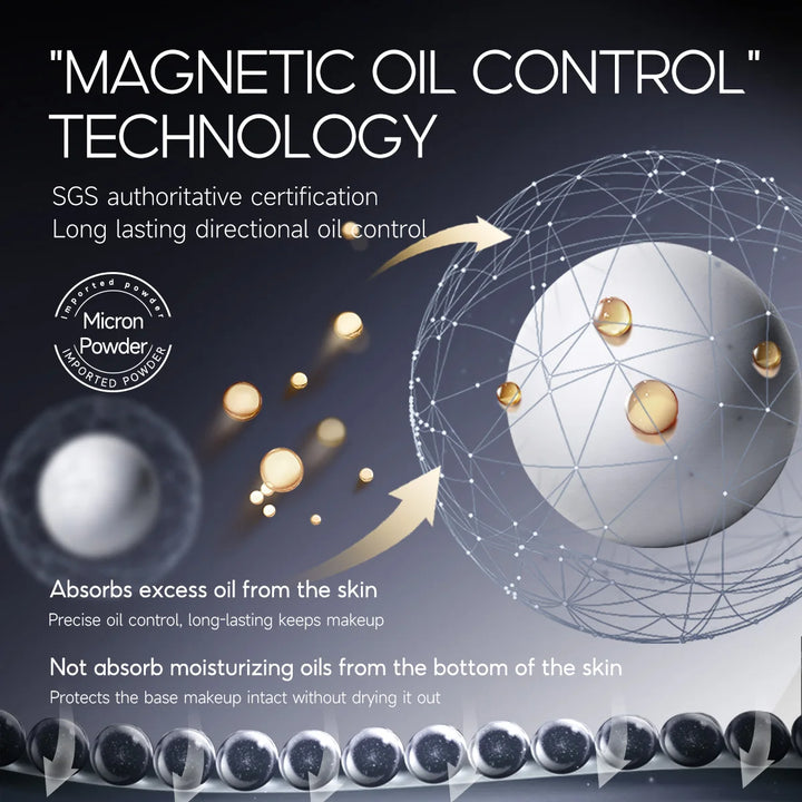 -4. Imported magnetic oil absorption technology, 12h directional oil absorption without makeup, directional oil absorption powder, absorbs excess skin oil, 3.5 times continuous oil absorption, porous hollow sphere, only absorbs oil but does not absorb makeup, locks the base makeup like a magnetic force