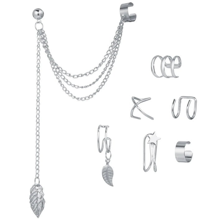 Non-Piercing Leaf Ear Cuffs: Gold & Silver Set